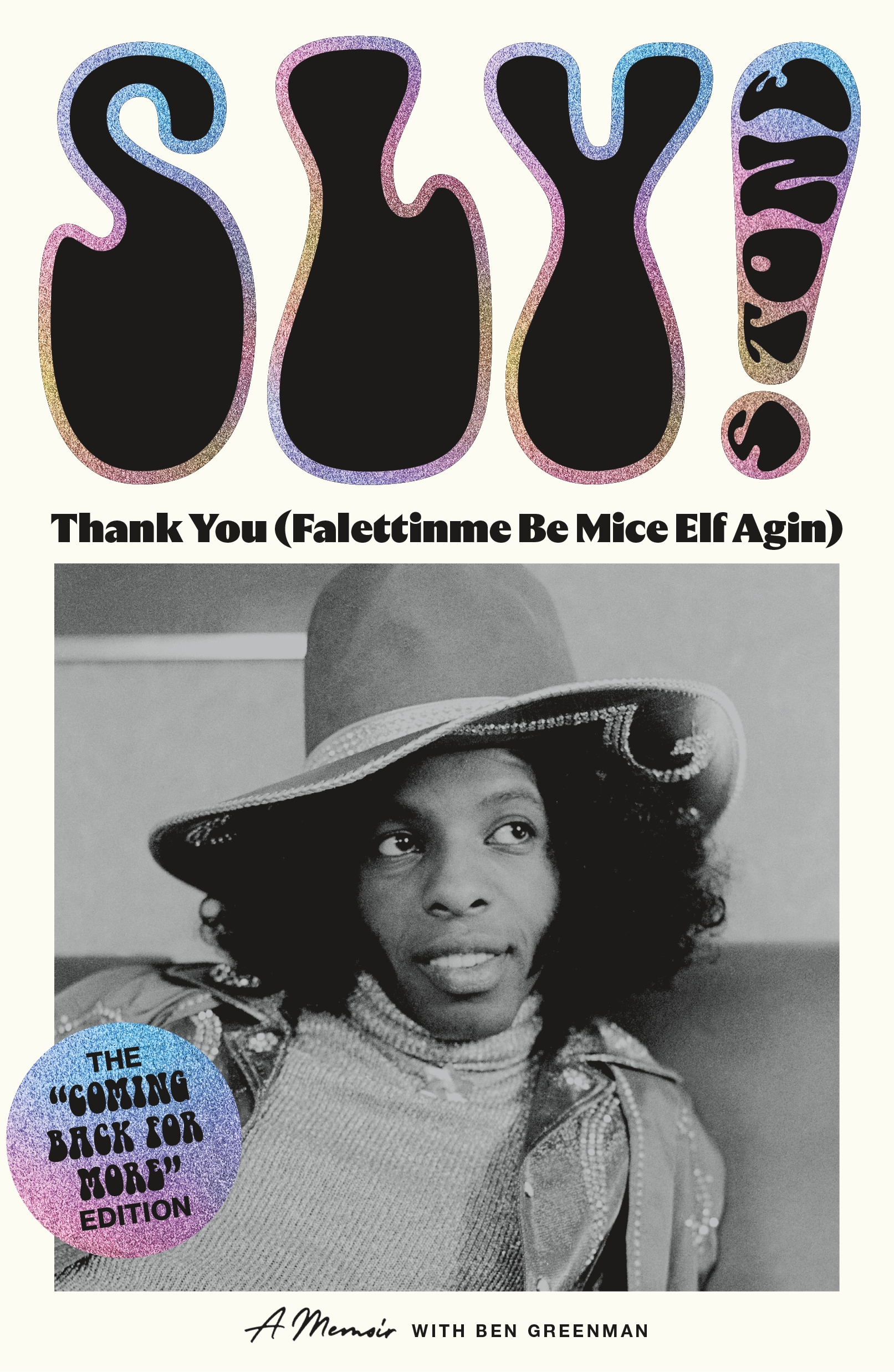 Written with Ben Greenman, who has also worked on memoirs with George Clinton and Brian Wilson, and in collaboration with Arlene Hirschkowitz, Thank You (Falettinme Be Mice Elf Agin) is a vivid, gripping, sometimes terrifying, and ultimately affirming tour through Sly’s life and career. Like Sly, it’s honest and playful, sharp and blunt, emotional and analytical, always moving and never standing still.